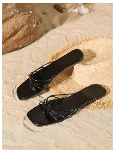 GORGLITTER Women's Square Open Toe Flip Flops Strappy Thong Sandals Dressy Flats Vacation Beach Slide Sandals 1
