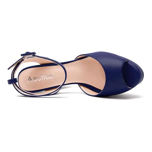 Aachcol Womens Chunky Block High Platform Heel Peep Open Toe Sandals Ankle Strap Slingback Buckle Prom Dress Summer 5.1 Inches Heels 4