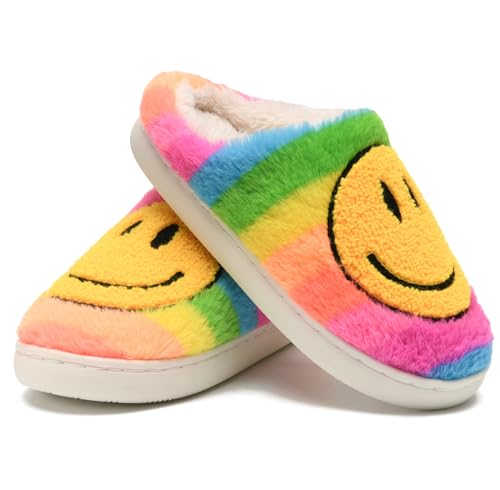 HOT ! Cute Smile Face Slippers, Fuupnn Retro Soft Plush Furry Fluffy Indoor Outdoor Shoes Comfy Warm Fleece Lined Fuzzy Slip-on Cloud sliders with Memory Foam Happy Face Slippers Couples Cute Cartoon Non Slip Smile Slippers for Winter