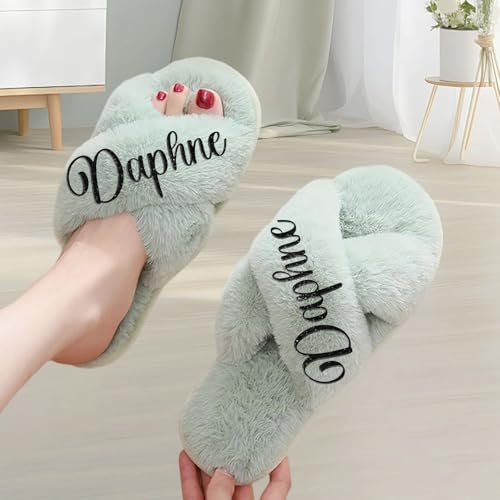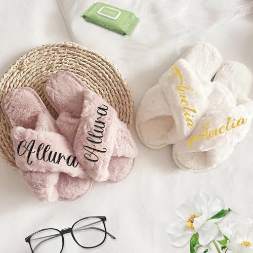 Personalized Fluffy Slippers for Women - Custom Bridesmaid Slippers for Wedding Party - Gift for Bride, Bridesmaid, Mom on Birthday, Christmas, Easter & Mother's Day 2
