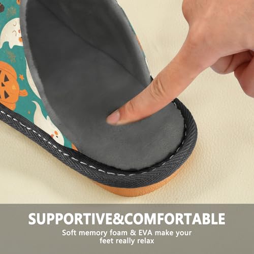 HOT ! JUNZAN Halloween Ghosts Memory Foam Slippers for Women Men House Slippers for Bedroom Indoor
