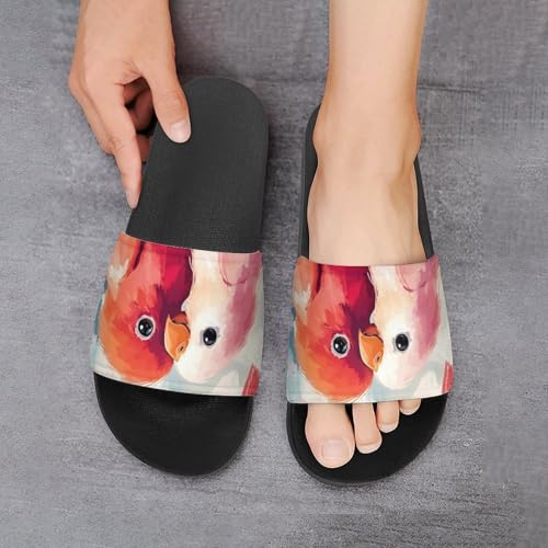 HOT ! Valentines Day Lovebird Parrots House Slippers for Women Men Personalized Shower Shoes Sandals Slides
