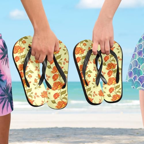 HOT ! Maple Leaf Sketch Orange Rose Leaves Pale Yellow Flip Flops for Beach Thong Sandals Anti-slip Lightweight Beach Slippers for Travel Summer Outdoor