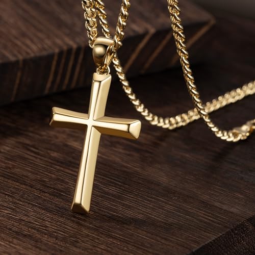 • [POWERFUL MINIMALIST DESIGN] This gold plated cross necklace for men features a clean, no-frills design that speaks volumes. With a focus on pure form and timeless style, the mens cross necklaces is a bold yet refined accessory—ideal for men who appreciate simplicity with substance