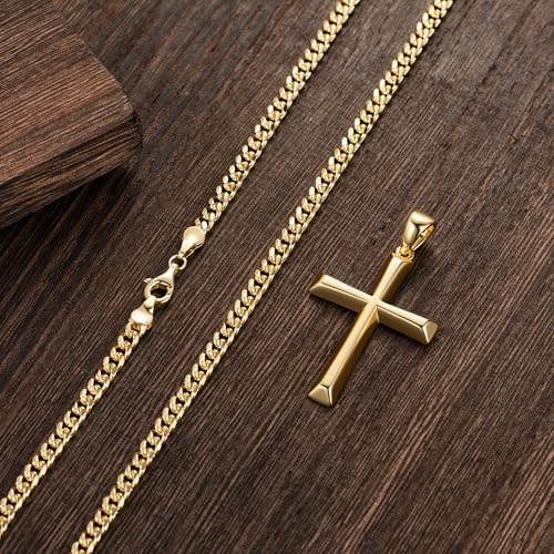 • [THICK CUBAN CHAIN, BUILT TO LAST] Paired with a 4.3mm Cuban chain, this cross necklace for men is as tough as armor. Break-resistant, the 14K gold plated cross chain for men is made for daily wear and built to keep up—strong, stylish, and ready for anything