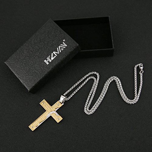 HOT ! HZMAN Men's Stainless Steel Jesus Christ Crucifix Cross Lord's Prayer Pendant Necklace