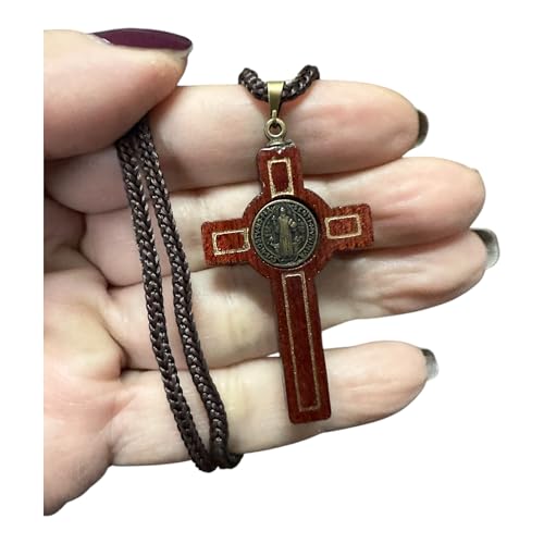 More information about Catholica Shop Saint Benedict Medal Wood Crucifix Cord Necklace for Men & Women – Handcrafted Religious Pendant, Healing, Travel Protection, Perfect for Gifting on Special Occasions, Made in Brazil