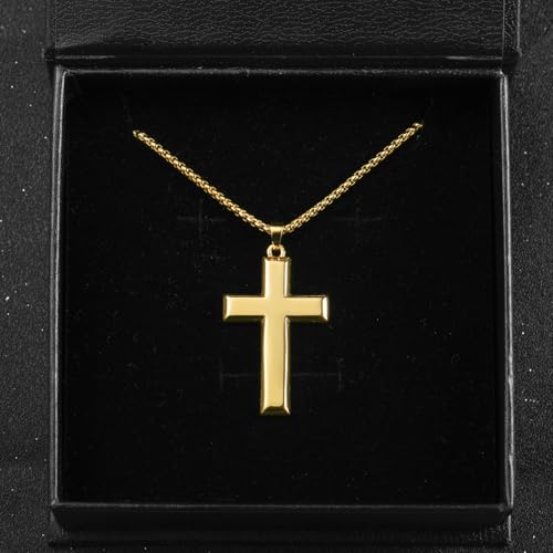 • Durable and Sturdy: The 20 inch (50 cm) mens gold cross necklace is made of high-quality 316L stainless steel, which is not easy to break. With highly polished beveled edge design, 35mm long, 23mm wide, and 3mm thick, making it more unique and shiny than ordinary crosses.