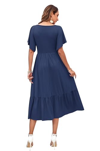 • Aesthetic design: Summer empire waist dress for women used drawstring pleating with v neck aims to liberate your boobs, which takes care of elegant and sexy. Flutter sleeve, solod color with flowy classy and elegant midi dresses, how feminine and modest, meanwhile, it's also got a boho chic ethereal queen vibe, long tiered dress explained what is cute and gorgeous