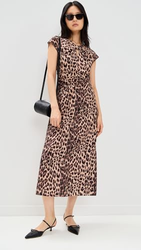 • Bias cut for slight stretch, Leopard print, Twisted cutout design at chest, Ruched waist