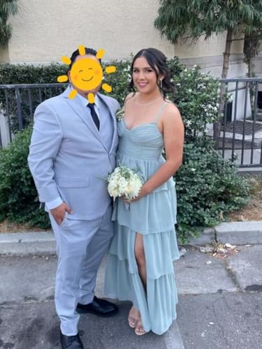 More information about Noras dress Women's Adjustable Spaghetti Straps Bridesmaid Dresses for Wedding V Tiered Split Formal Evening Gown NO285