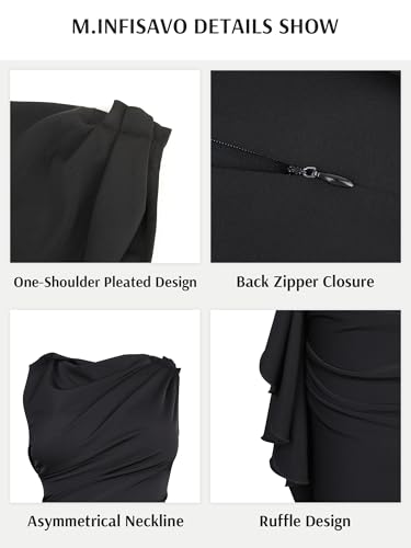 M.Infisavo Women’s Elegant Dress Ruched Bodycon Ruffle Side Sleeveless Dresses for Wedding Guest, Cocktail, Homecoming 1