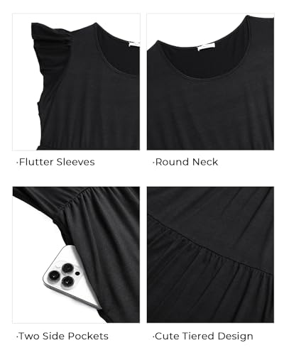 • ❤Design: The plus size casual dress features a round neck, flutter sleeves, an elastic waist, and a flowy tiered hem, all of which flatter your figure and showcase your feminine charm. The pleated waist at the front also helps to conceal the belly. Pockets on either side of the dress provide a handy place for your keys and phone.