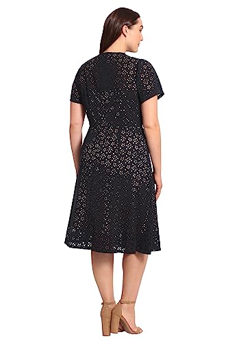 HOT ! Maggy London Women's A-line Short Sleeve Floral Laser Cut Knee Length Dress