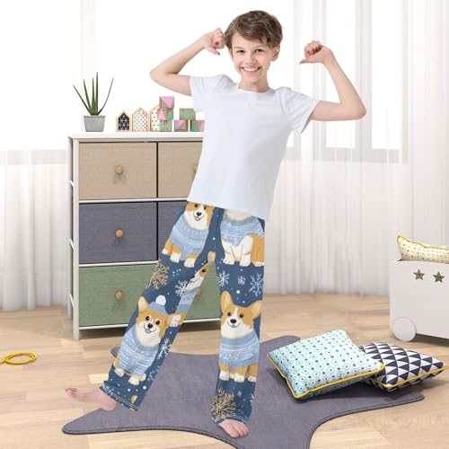 HOT ! Corgi Dog with Sweater Boys Long Pants Soft Trousers Elastic Waist Kids Lounge Bottoms with Pockets S-XL