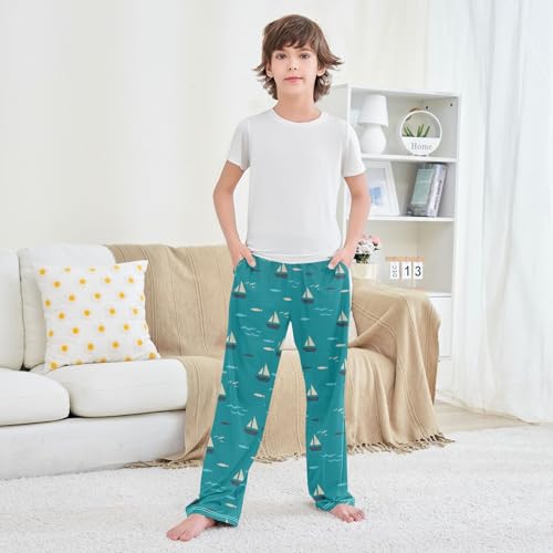 HOT ! ZZXXB Sea Sailboat Fish Boys Long Pants Soft Trousers Elastic Waist Kids Lounge Bottoms with Pockets S-XL