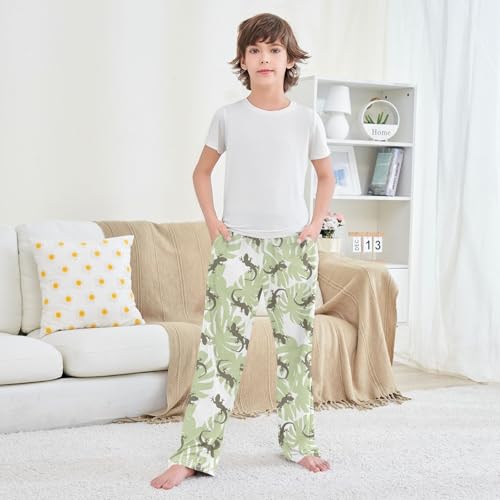 ZZXXB Iguana Leaves Boys Long Pants Soft Trousers Elastic Waist Kids Lounge Bottoms with Pockets S-XL 3