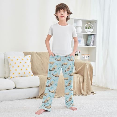 ZZXXB Seal with Fish Boys Long Pants Soft Trousers Elastic Waist Kids Lounge Bottoms with Pockets S-XL 3