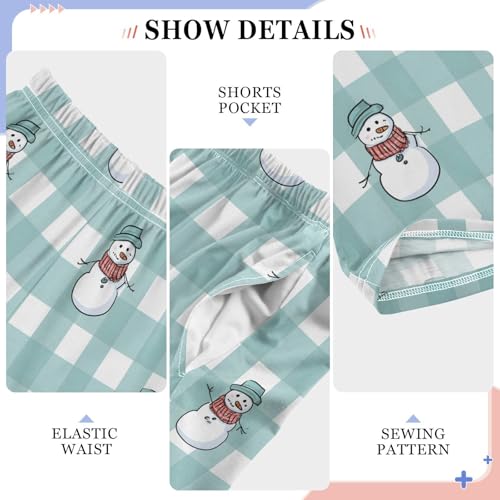 Christmas Pajama Pants Snowman Blue White Plaid Long Sleep Pants Lounge Bottoms 5