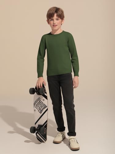 • Design: Featuring a classic crewneck design with long sleeves, this pullover offers a timeless style that suits various tastes. Available in solid colors, the youth sweater boasts a tailored fit that enhances its textural appeal. Ribbed cuffs and hem add a touch of sophistication while ensuring the sweater easy to maintains its shape wash after wash
