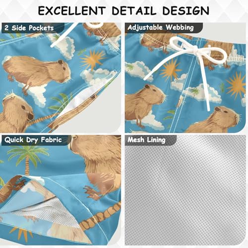 • Stylish Board Shorts: Unique and cool print, fun and stylish, there are 2 side pockets in this boy bathing swimsuits