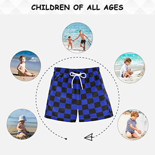Black Blue Square Plaid Boys Swim Trunks Checkerboard Toddler Beach Board Shorts Baby Summer Bathing Suit 3T 5