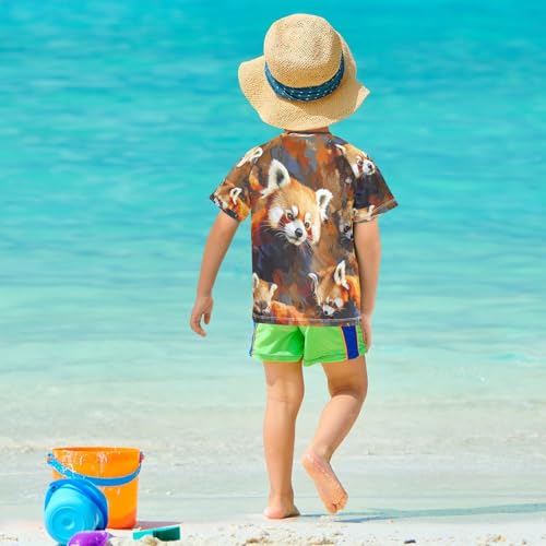 Boys Short Sleeve T-Shirts Bears Panda Orange Rashguard Kids Swim Shirts Sun UPF 50+ 4