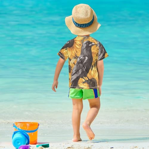Boys Short Sleeve T-Shirts Floral Crows Sunflower Rashguard Kids Swim Shirts Sun UPF 50+ 2