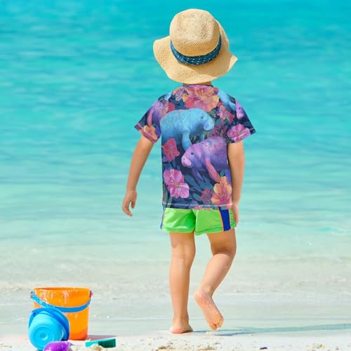 Boys Short Sleeve T-Shirts Ocean Floral Manatees Rashguard Kids Swim Shirts Sun UPF 50+ 1