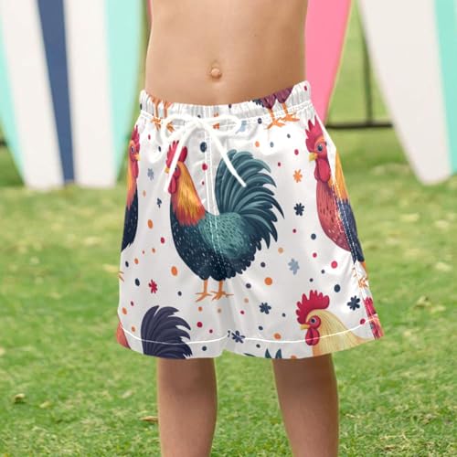 Pigsaly Boys Swim Trunks Cartoon Flowers Roosters Boys Board Shorts Swimsuit Swimwear Summer Bathing Suit S 3