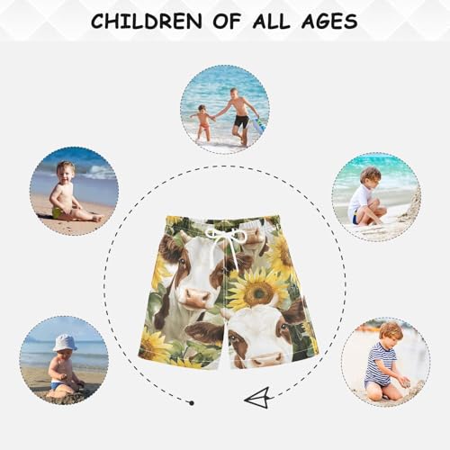 Boys Beach Board Shorts Animal Cow Yak Sunflower Swim Trunk Teen Swimwear 5