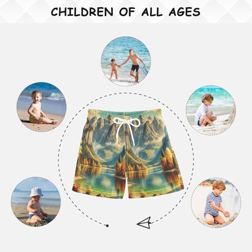 HOT ! Mountain Lake Fall Boys Swim Trunks Quick Dry Toddler Swimsuit Boy Bathing Suits Board Shorts Swimwear L Multi