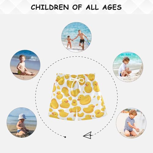 Boys Quick Dry Swim Trunks with Pockets Cartoon Yellow Duck Beach Shorts for Kids, Toddler Swimsuit Boy 5