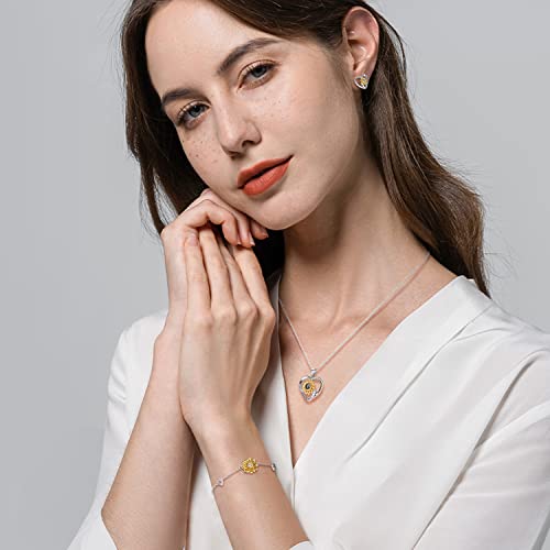 SNZM Bracelets for Women-925 Sterling Silver Sunflower Bracelet Chain Adjustable Heart Charm Link Birthday Sunflower Jewelry Gifts for Women/Daughter/Girlfriend 5