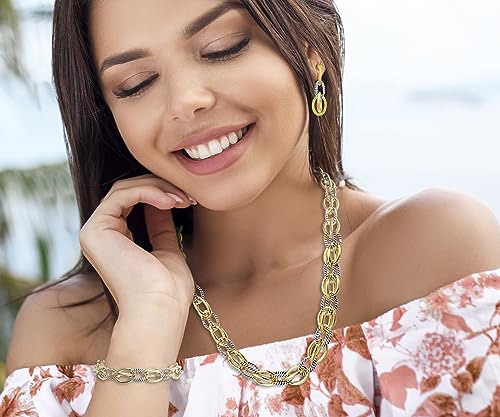 More information about UNY JEWEL Luxury Fusion Twisted Cable Link Chain Bracelet for Women Shinny Designer Dupes Statement Jewelry Two Tone Gold Wire Link