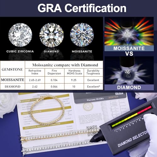 • 【Ice Out Moissanite Jewelry】Moissanite shines brighterand you'll never get tired of seeing the sparkle from all angle! Unlike those cubic zironia Jewelry, every moissanite tennis bracelet has a GRA Certificate and they can pass the tester.