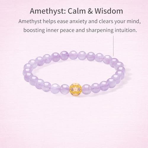 • Varied occasion: Perfect for those seeking balance and creativity, the amethyst gold bracelet is ideal for both casual and formal occasions. Its calming energy makes it great for meditation, daily wear, or special events. A stylish accessory for any wardrobe, it enhances both peace and elegance. Stretch bracelet length: 6.7"/17cm.(This 24K stretch bracelet comes with extra 4 amethyst beads and 1 stretch string, you can add more beads with the new string to customize your own size)