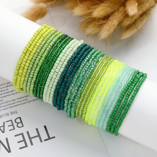 tenghong2021 30pcs Elastic Stackable Multilayer Stretch Bracelets Anklet for Women Boho Multi-Strand Seed Beaded Bohemian Handmade Summer Beach Gift Jewelry 5
