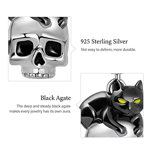GNOCE Black Cat Skull Pendant Sterling Silver Gold Plated Dangle Charm Fit Bracelet/Necklace for Women 4