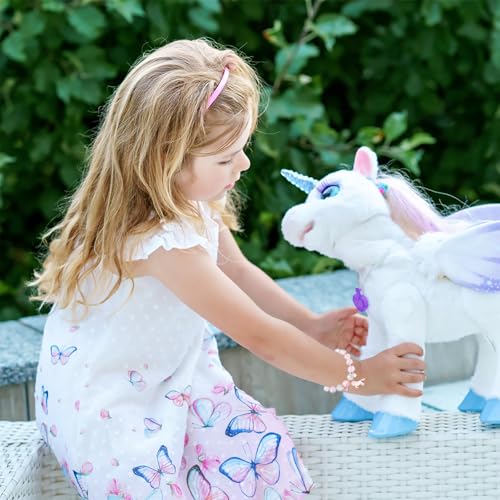 • 【Gifts for 3-8 Year Old Girl 】 -- The sparkly and lovely unicorn bracelet comes with a Flannel bag and a greeting card. You can write some of your blessings on the back of the and put it in the envelope, tell her you are magical and unique, and I will Love You Always.