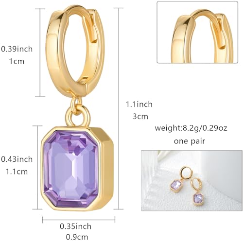 Birthstone Crystal Dangle Drop Earrings, 18K Gold Plated Huggie Hoop Hypoallergenic Earring Jewelry Gifts for Women 6
