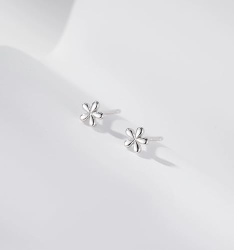 Mini Silver Flower Studs Earrings, 14K White Gold Plated Tiny Daisy Studs Earrings for Women 5