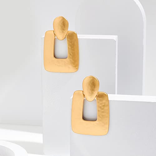 • Unique Geometric Design: These clip on earrings feature a unique geometric design with a hammered teardrop clip and a trapezoidal brass drop, making them a stylish and eye-catching accessory.