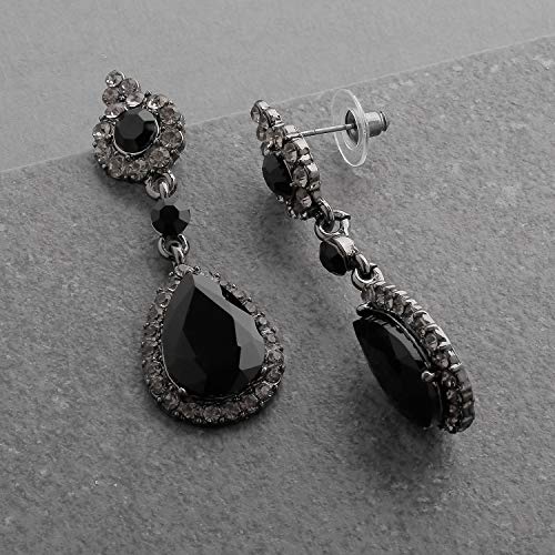 • LUXURY STYLE: Mariell's Fabulous Jet Black Austrian Crystal Dangle Earrings Feature Stunning Pear-shaped Black Crystals Drops in a Black Diamond Crystal Accented Pave Frame. Perfect for Proms, Bridesmaids, Homecoming and Special Occasions, Also Great for Jazzing Up Casual Attire