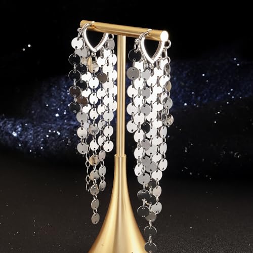 HOT ! Sequin Metal Tassel Earrings Disc Tassel for Women 18K 14K Gold Plated Trendy Dainty Earrings Lightweight Sparkly Chandelier Hoops Small Leaf