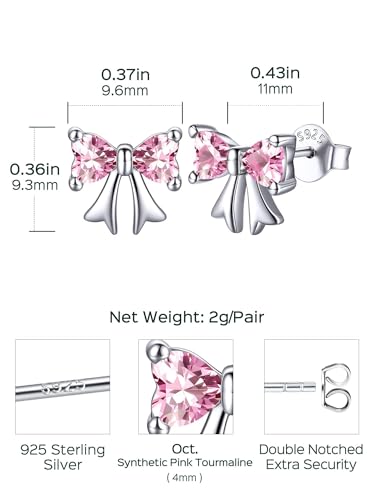 ChicSilver Bow Earrings for Women Cute Earrings Hypoallergenic 925 Sterling Silver Birthstone Earrings 5