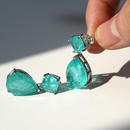 Paraiba Tourmaline Vintage Teardrop Dangle Earrings, Bridal Bridesmaids Statement Drop Jewelry for Women, Wedding Prom 2025 Trend, Silver-plated Metal Emerald Gemstone, Big Cocktail Fine Party Gift 6