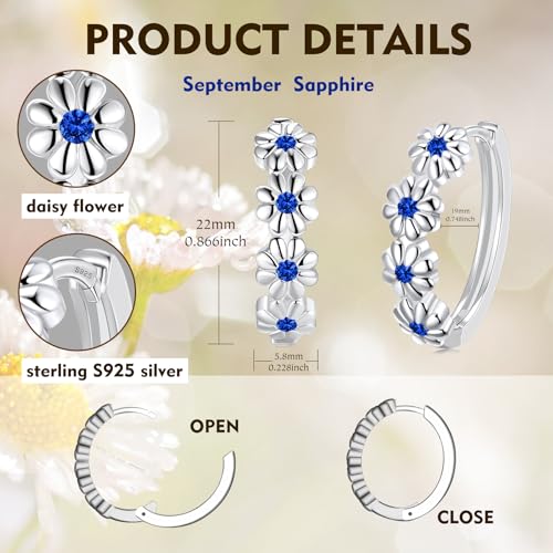 Daisy Flower Earrings For Women, Birth Flower Birthstone Hoop Earrings For Daughter Mother Mom, Sterling S925 Silver, I Think Of You Every Daisy 5