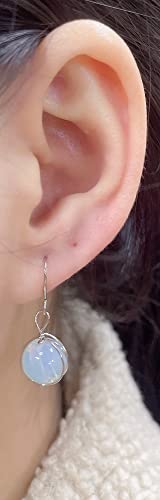 Opalite Moon Stone Round Stone Dainty Teardrop Small Dangle Drop Earrings for Women Silver Plated Elegant Hook Short Dangling Hanging Hypoallergenic Jewelry Gifts Birthday Bff Party 6