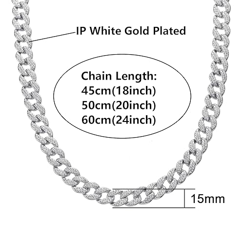 • [Design Concept]: The surface of the hip hop Cuban link chain is treated with high-tech electroplating, no tarnish and fade quickly. All these rhinestones are hand set by artisans who have experience more than five years. They will always put you in the spot light in all occasions. Show your personality anytime, anywhere! It is different from the traditional chain, which is so sleek and well-designed.